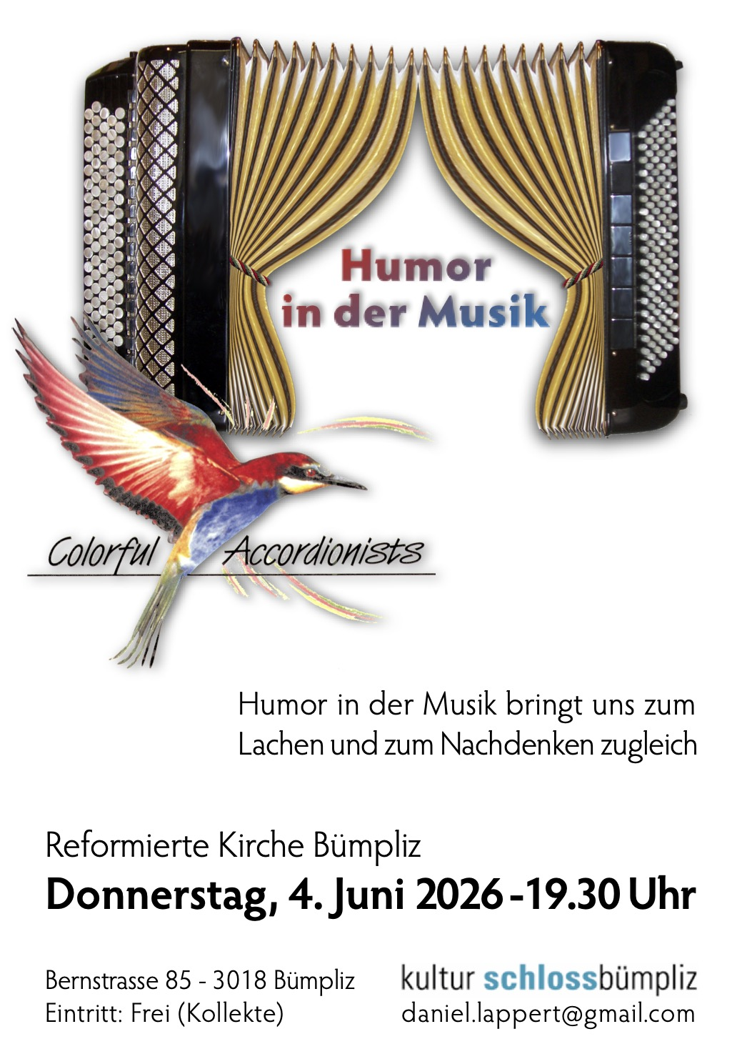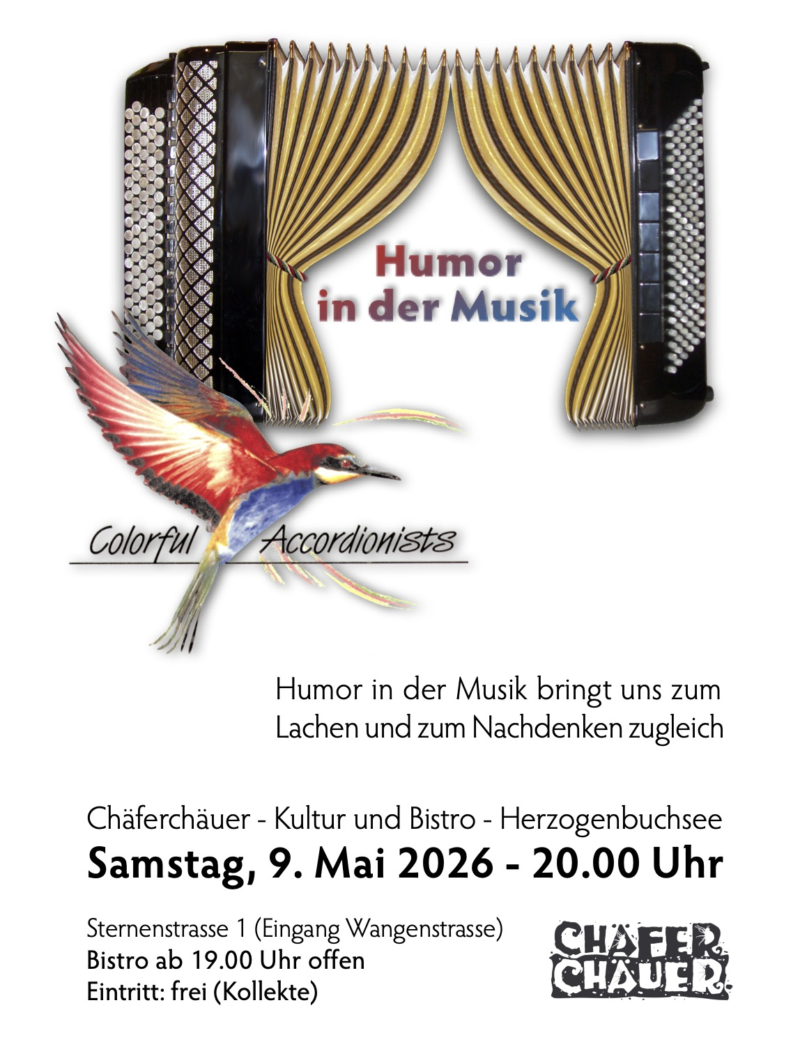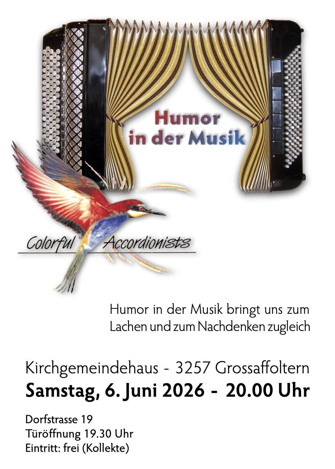 Humor in der Musik bringt uns zum Lachen und zum Nachdenken zugleich. Weitere Informationen und Flyer Download unter https://accorda.ch/konzerte