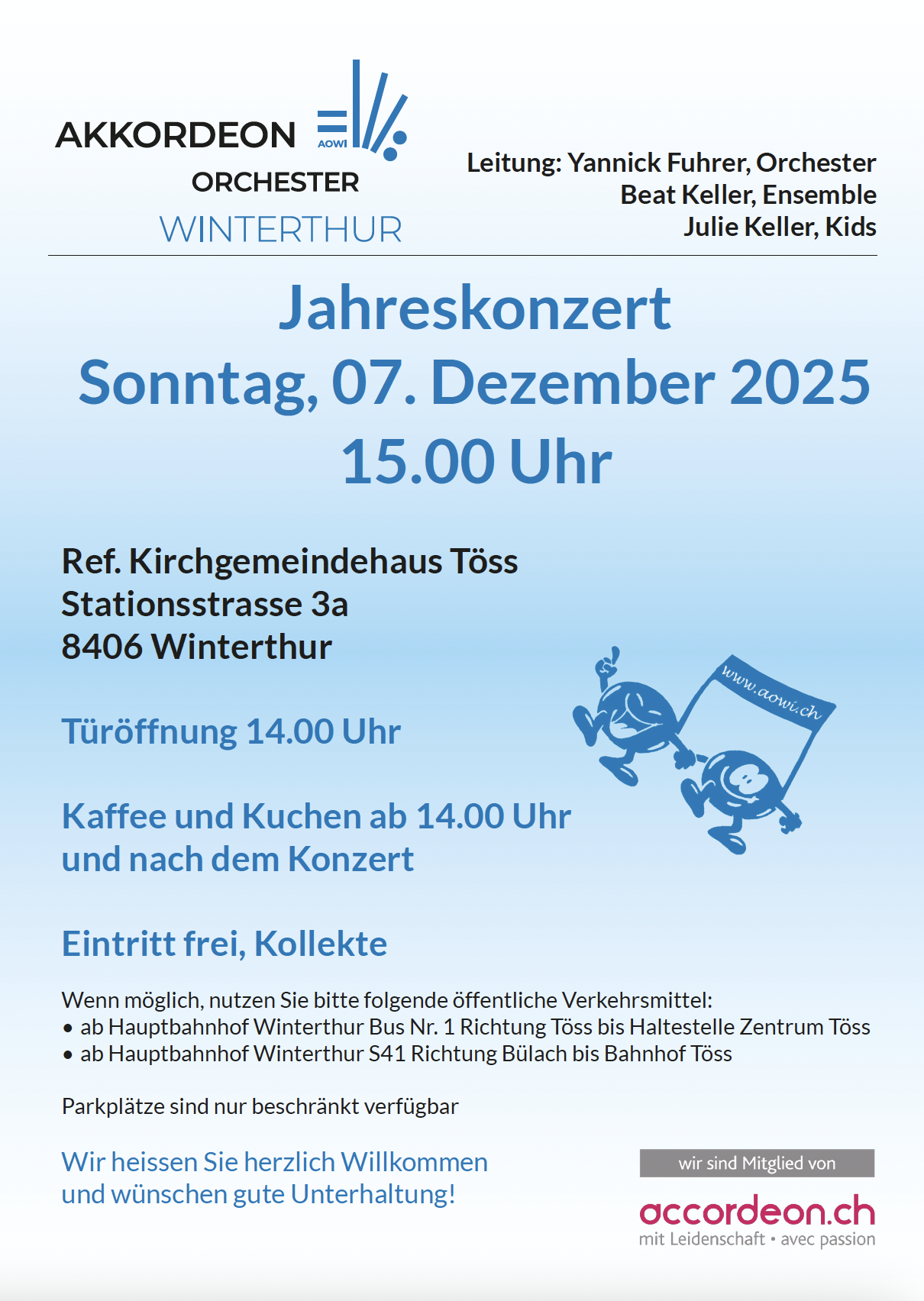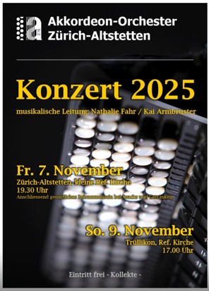 Jahreskonzert 30. November 2025 Akkordeon-Orchester Aarberg/Kallnach Beginn: 14.30 Uhr Leitung: Doris Peters