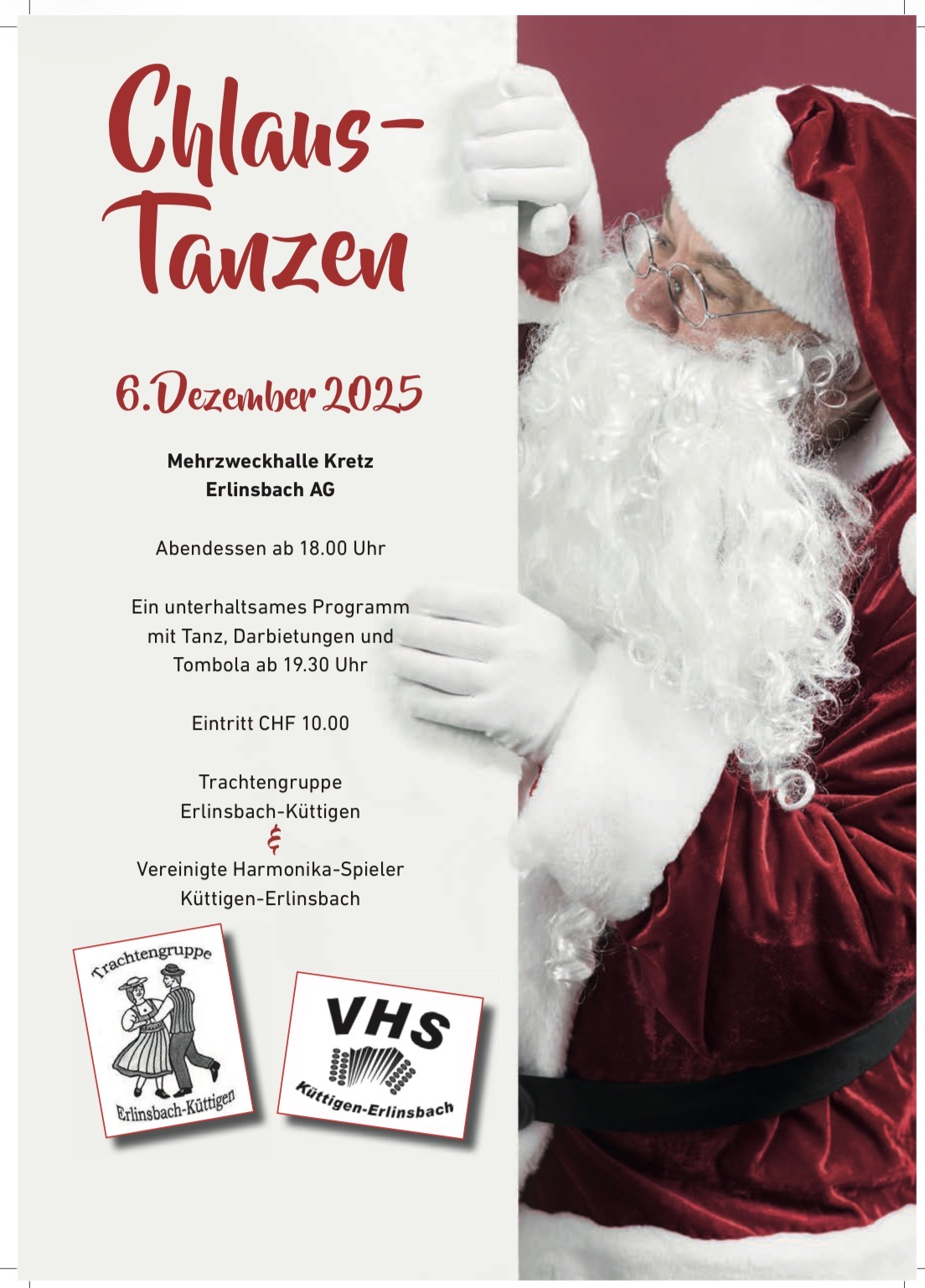 Ein unterhaltsames Programm mit Tanz, Darbietungen und Tombola ab 19.30 Uhr (Türöffnung und Abendessen ab 18.00 Uhr). Die Veranstaltung führen wir Vereinigten Harmonika-Spieler Küttigen-Erlinsbach zusammen mit der Trachtengruppe Erlinsbach-Küttigen durch. Wir verbinden an diesem Abend moderne Akkordeon-Unterhaltungsmusik mit dem Brauchtum und der Tradition des Volkstanzes - eine einzigartige Kombination! Wir freuen uns über Ihren Besuch und sind überzeugt, dass Sie bei uns einen unvergesslichen Abend verbringen werden. Lassen Sie sich überraschen! Vereinigte Harmonikaspieler Küttigen-Erlinsbach Trachtengruppe Erlinsbach-Küttigen