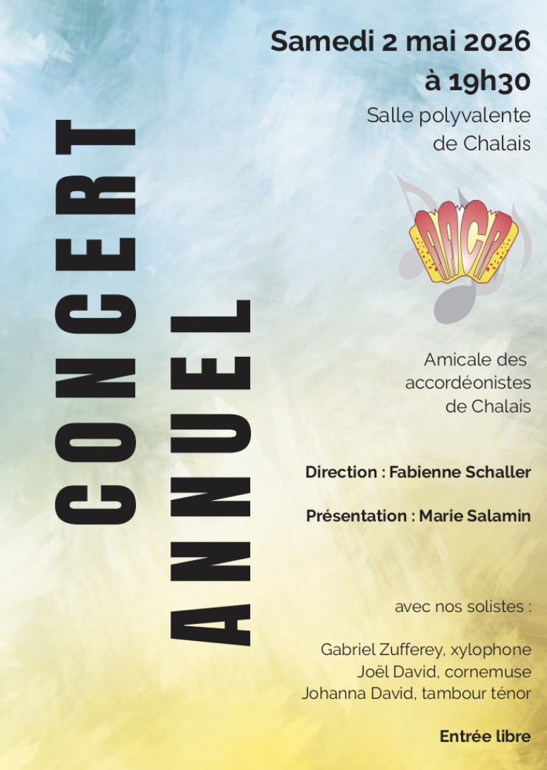 L’Orchestre des Jeunes Accordéonistes de Suisse romande aura le plaisir de se produire à Sion le dimanche 19 avril 2026 à 16h00 au Pôle Musique. En première partie, vous pourrez découvrir quelques prestations de musiciens de l’ensemble. Ensuite, l’OJA vous proposera un programme riche et varié, avec des titres connus tels que Music, Take on Me, Sweet Caroline, ainsi que deux œuvres de Ian Watson. Venez nombreux soutenir la relève de l’accordéon en Suisse romande et découvrir tout le talent de ces jeunes musiciens. Entrée libre – collecte à la sortie.